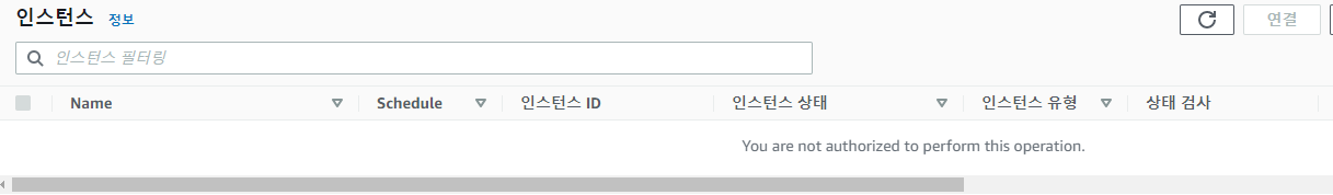 { "Version": "2012-10-17", "Statement": { "Effect": "Deny", "Action": "*", "Resource": "*", "Condition": { "NotIpAddress": { "aws:SourceIp": [ "x.x.x.x/32", ] }, "Bool": { "aws:ViaAWSService": "false" } } } }로그인은 되지만 각 서비스별로 권한없음을 볼 수 있다.