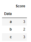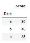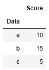import pandas as pd lst_A = ['a','b','c', 'a', 'a', 'b', 'c', 'c'] lst_B = [10,15,20,15,30,40,35,5] df = pd.DataFrame([ x for x in zip(lst_A,lst_B)], columns=['Data','Score']) df